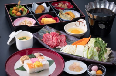 - YAKAGEモザイク寿司と千屋牛すき焼き鍋御膳 3,500円 税込